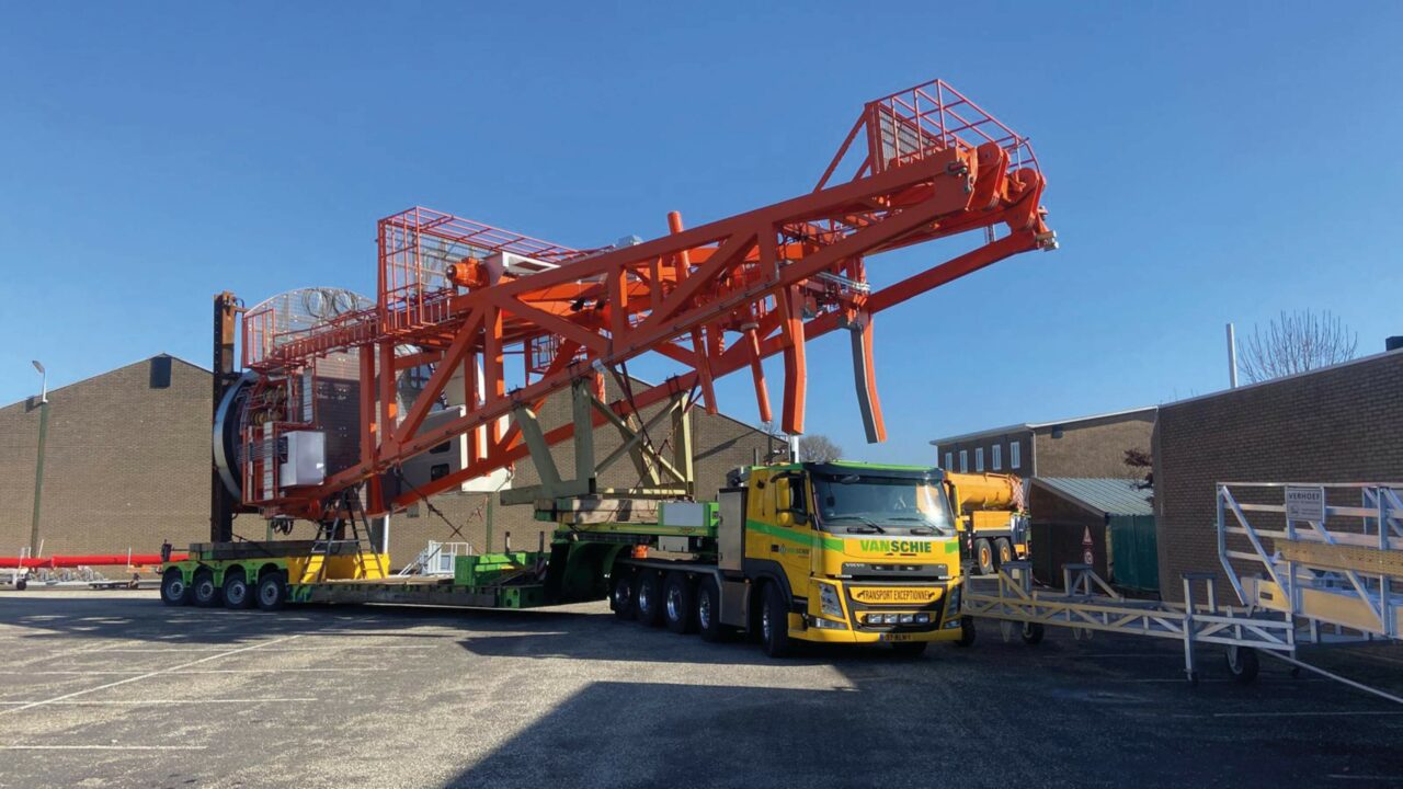 Naast de nodige kranen zijn dit soort schepen, zoals de Blue Tern, vaak uitgerust met een uitschuifbare gangway-installatie waarmee de werkers veilig op de fundatie van de windturbine kunnen komen. De telescopische gangway die nu door Verhoef is afgeleverd, is 45 meter lang en wordt elektrisch-hydraulisch bediend. Vanaf het terrein van Verhoef is de hele installatie met een dieplader naar de waterkant gereden en daar met twee telekranen, van respectievelijk 250 en 150 ton op het ponton gezet.